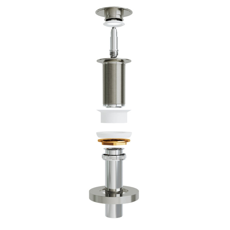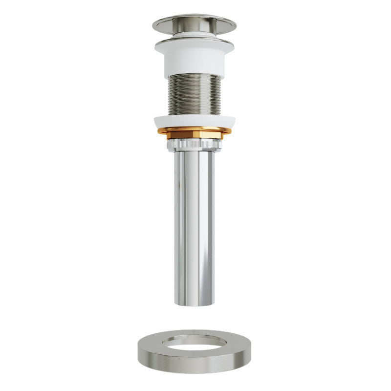 Add both style and practicality to your vessel sink installation with the VIGO Vessel Bathroom Sink Pop-Up Drain and Mounting Ring. Specially designed for countertop-mounted vessel bowl sinks, this set includes a pop-up drain and an optional mounting ring that lifts the sink slightly above the countertop for easier cleaning and added stability. Made from solid brass and finished with VIGO’s premium corrosion-resistant coating, it ensures long-lasting performance and a cohesive look with your bathroom fixtures.