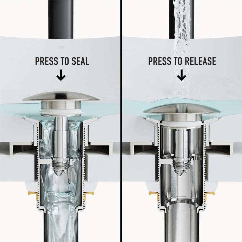VIGO Vessel Bathroom Sink Pop-Up Drain and Mounting Ring in Polished Chrome, Matte Black, Brushed Gold, Brushed Nickel, Antique Rubbed Bronze, Matte White, and Oil Rubbed Bronze | Solid Brass Construction