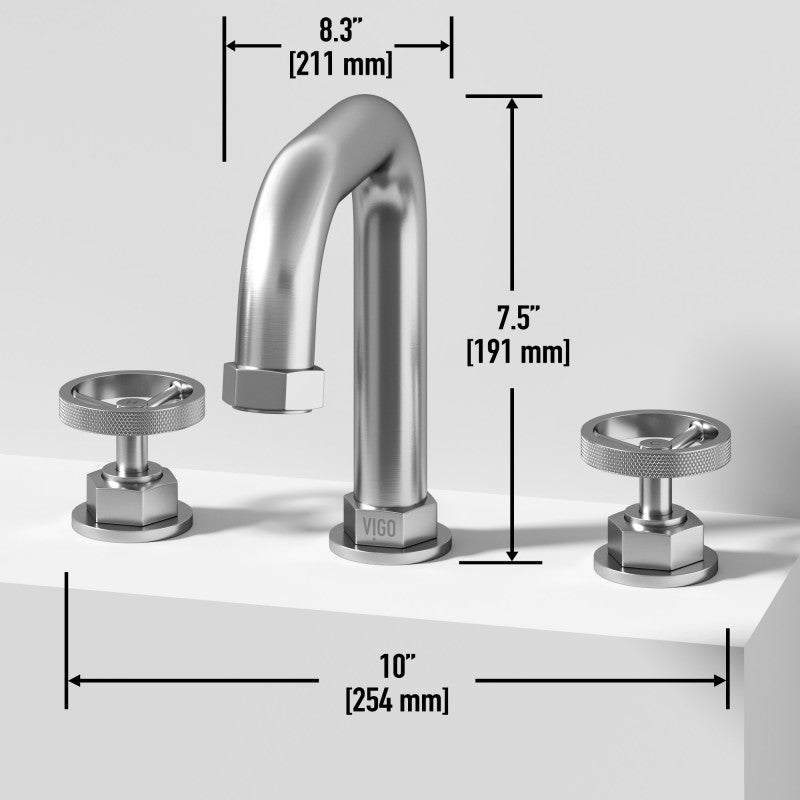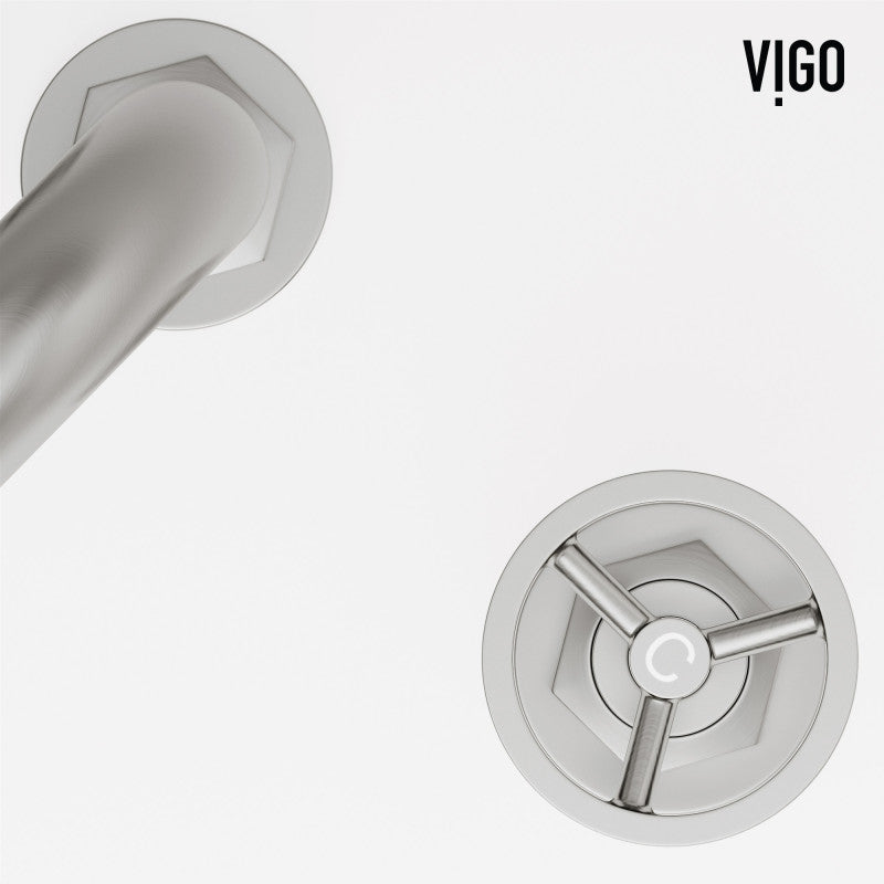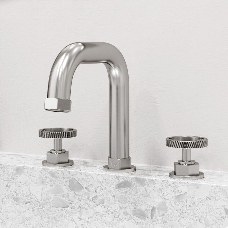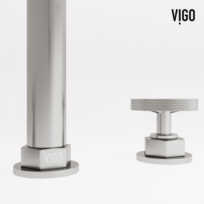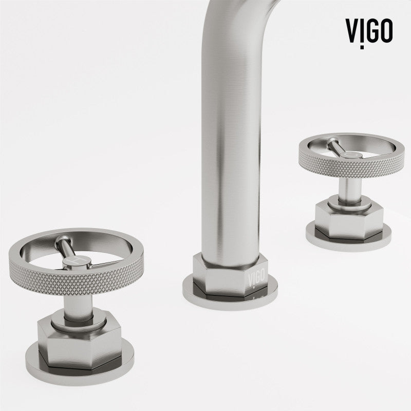 VIGO Hart Wheel Widespread Bathroom Faucet with Hexagonal Tip