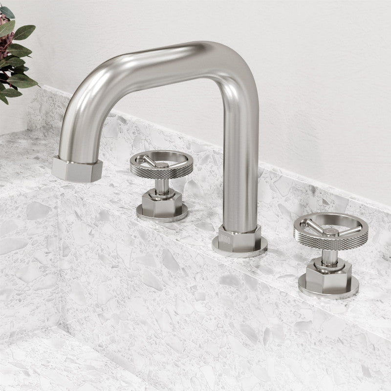 Give your bathroom a refreshing makeover with the VIGO Hart Wheel Widespread Faucet. Featuring a distinctive hexagonal faucet tip and a sophisticated squared high arc spout, it exudes supreme sophistication. Its robust build ensures lasting longevity. Experience eco-friendly opulence with its innovative water-saving design that maintains optimal water pressure. The FinishPlated™ multi-layered coating ensures a stunning and enduring shine. Enhance your bathroom with the Hart Widespread Faucet, seamlessly combining modern style and water-efficient functionality for your home.
