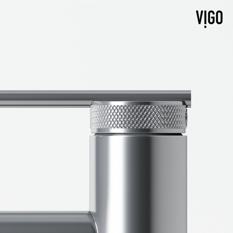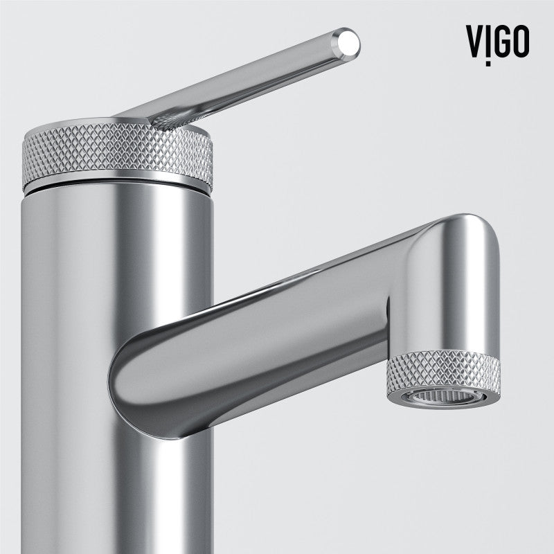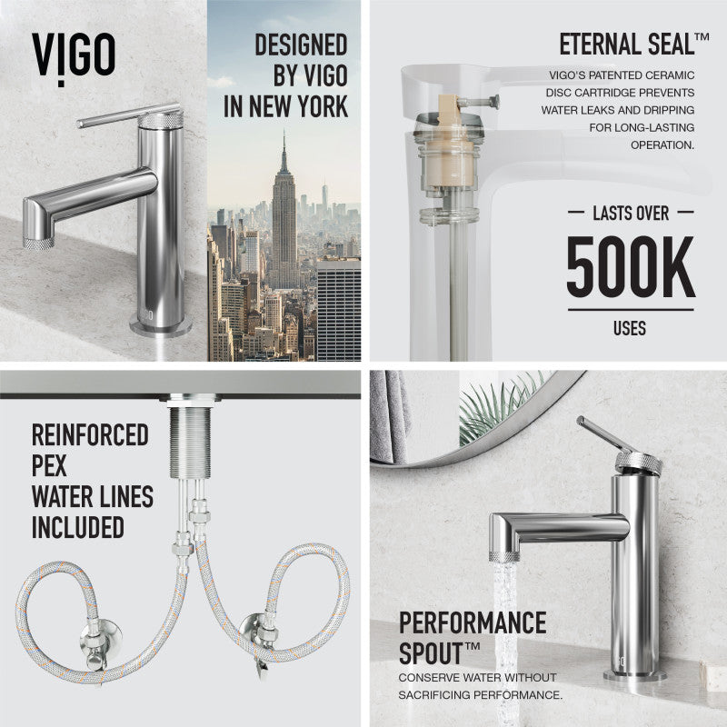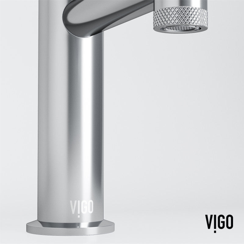 VIGO presents The Sterling Single Hole, Single Handle Bathroom Faucet, featuring a sleek single handle and a distinctive diamond design accent. Its elegant high arc spout provides ample space for comfortable hand-washing, enhancing your daily routine. The solid brass construction ensures long-lasting durability, while VIGO’s high-quality 7-layer FinishPlated™ finish resists rust, tarnish, and corrosion, maintaining its beauty for years to come. A simple 5-step EZInstall™ DIY installation process makes it easy for you to elevate your bath space. Complete your desired bathroom look by pairing the Sterling faucet with a single-hole sink and a matching finish pop-up drain from VIGO, available separately. This stylish faucet is available in four premium finishes: Brushed Nickel, the timeless shine of Polished Chrome, the bold sophistication of Matte Black, and the warm elegance of Brushed Gold.