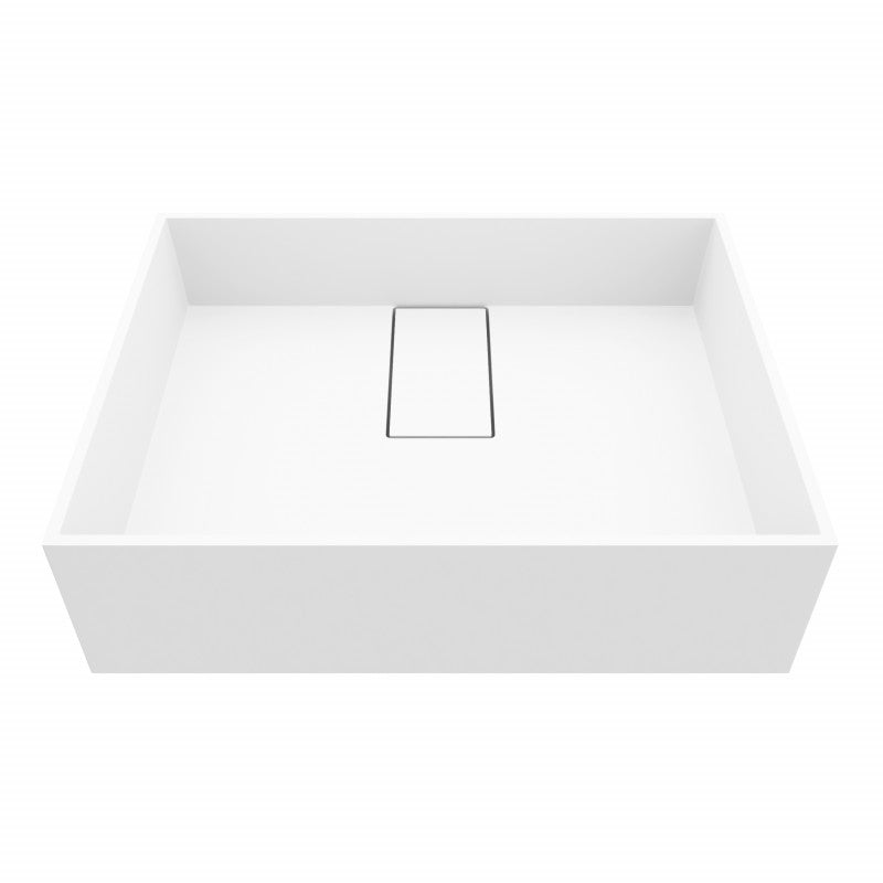 Bryant Matte Stone™ Vessel Bathroom Sink – Seamless Matte White Composite with Integrated Drain Plate and Modern Rectangular Design
