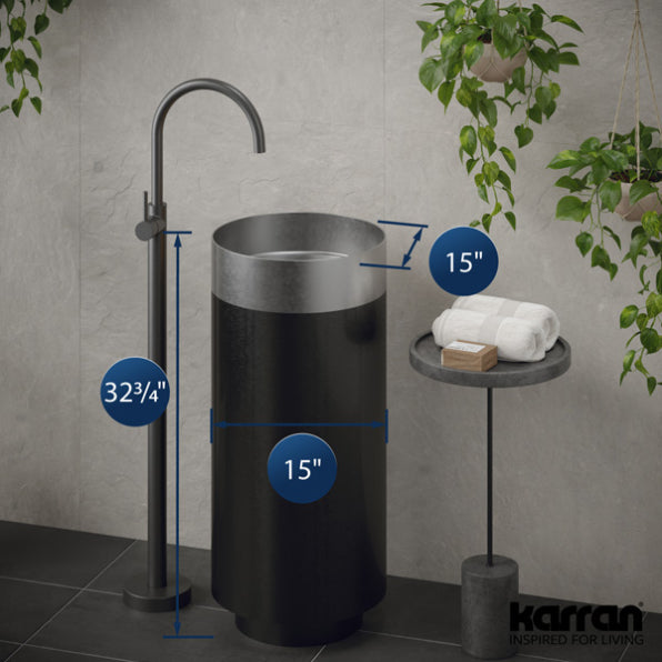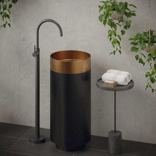 The Cinox Gunmetal Base Stainless Steel Pedestal Sink blends luxury and modern design seamlessly. Featuring a dual-tone metallic finish with Gunmetal Grey and your choice of Gold, Copper, or Stainless Steel, this sink offers a sophisticated touch that elevates any bathroom. Crafted from high-grade T-304 stainless steel, the sink provides exceptional durability and a bold, modern aesthetic, making it a perfect fit for contemporary bathrooms.
