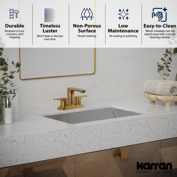 - Distinctive Tapered Rectangular Shape: The sleek, tapered rectangular design adds a contemporary flair to the classic undermount sink, providing a modern look that fits a variety of bathroom styles.