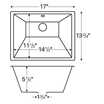 - Inside Bowl Dimensions: 14-1/2” x 11-1/2” x 5-1/4”