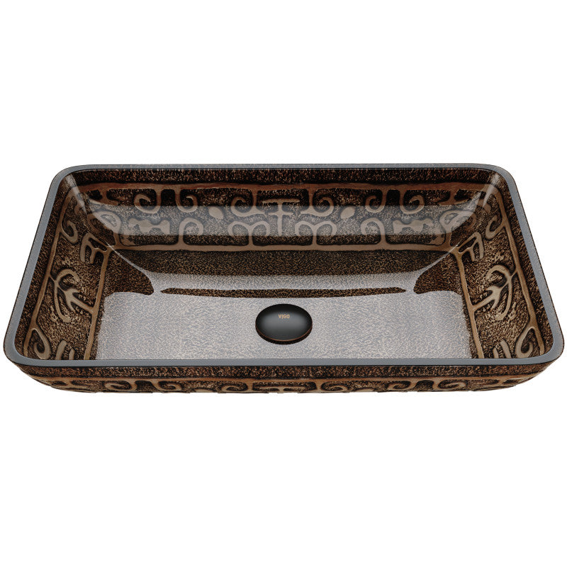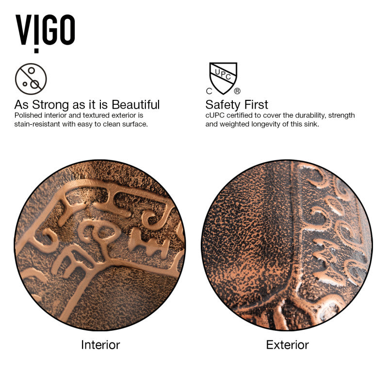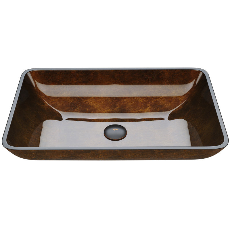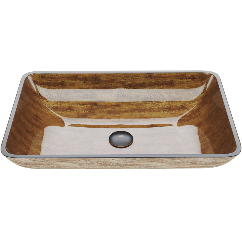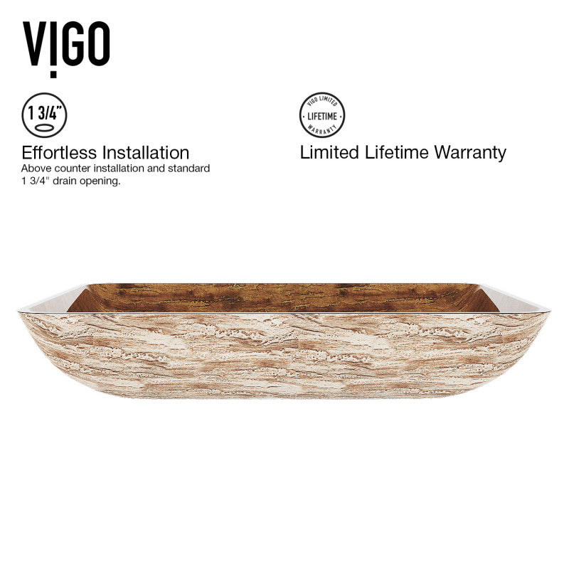 Bring the warmth of organic texture and modern form into your bathroom with the VIGO Hadyn Glass Vessel Sink. Available in four distinctive finishes: Amber Sunset, Copper, Golden Greek, and Russet. Each sink is handmade from solid tempered glass for exceptional durability and everyday elegance. The wood-grain-inspired patterns and rich color variations are paired with a polished interior and textured exterior for a dynamic contrast of sheen and texture. Designed for above-counter installation, the Hadyn sink adds sculptural dimension and earthy sophistication to a wide range of bathroom styles.
