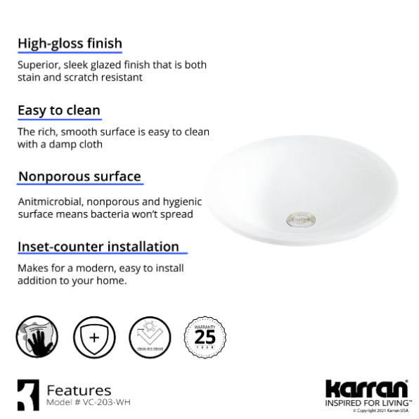 The Helsinki Vitreous China Drop-In Sink combines elegant design with long-lasting durability, making it the perfect addition to any bathroom. With its high-gloss, double-glazed finish, the Helsinki sink offers a sleek and modern look that is both easy to clean and highly resistant to stains, heat, and scratches. Designed for top-mount installation, it provides both beauty and functionality in one timeless piece.
