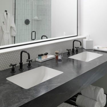 The Karran Seamless Rectangular Acrylic Solid Surface Undermount Sink combines modern design, functionality, and durability. Designed with a specialized resin matrix rim, this sink seamlessly integrates into laminate and solid surface countertops, and can be flush-mounted into granite or quartz countertops with a minimal reveal. Crafted from ultra-dense, non-porous acrylic resin, it offers an elegant, durable, and easy-to-care-for surface that enhances any bathroom space.