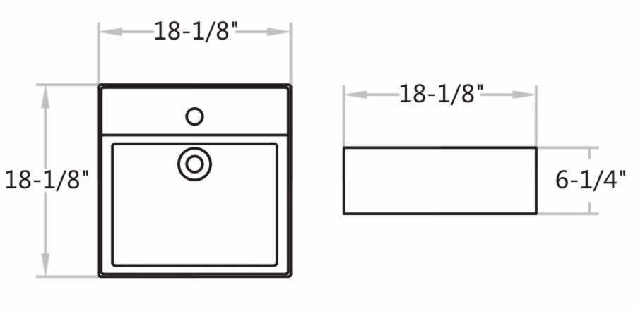 - Size: 18-1/8" x 18-1/8" x 6-1/4"