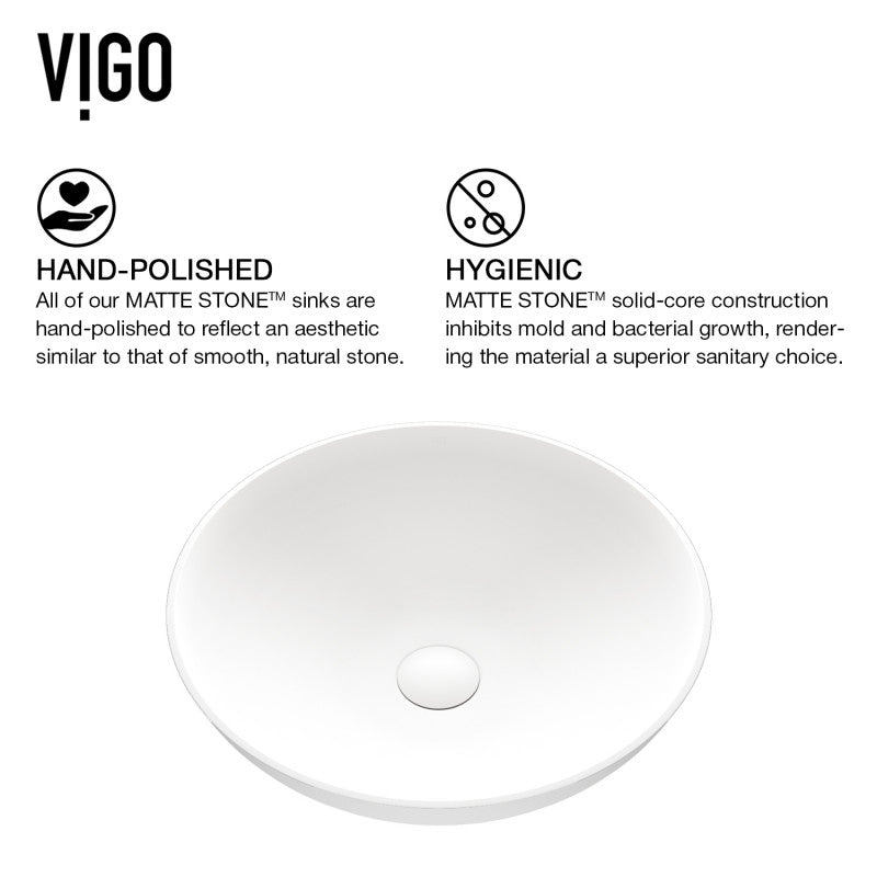 VIGO Lotus Matte White Round Vessel Sink – Seamless Matte Stone™ Design with Deep Basin and Space-Saving Style