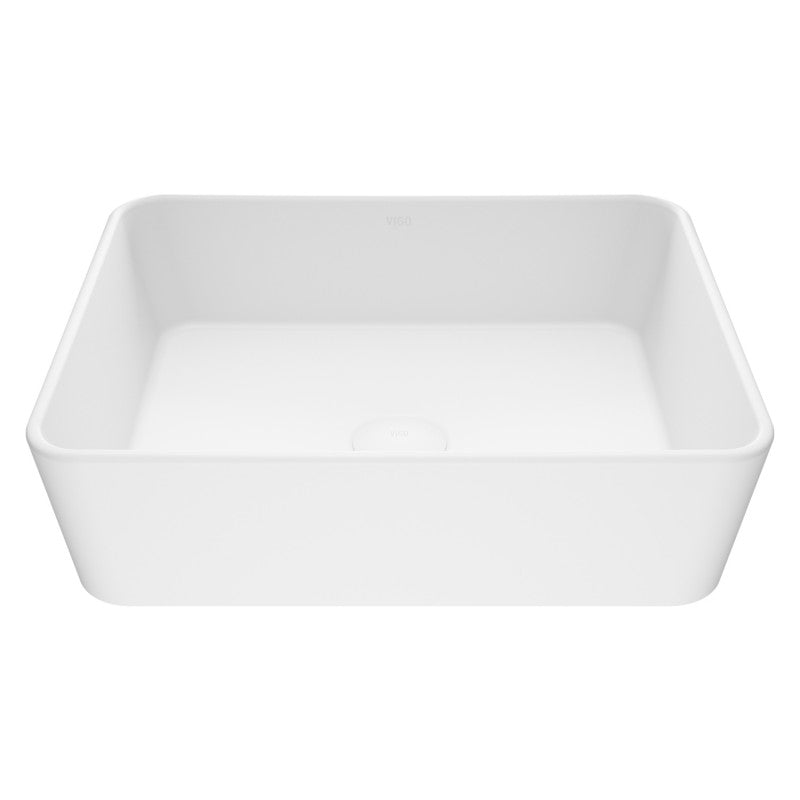 VIGO Marigold Matte White Rectangular Vessel Sink – Seamless Matte Stone™ with Angular Form and Satin Finish