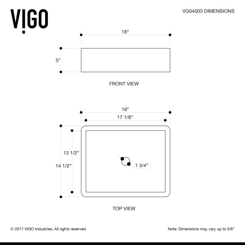 - Exterior Dimensions: 17 3/4" L x 14 3/8" W x 5" H