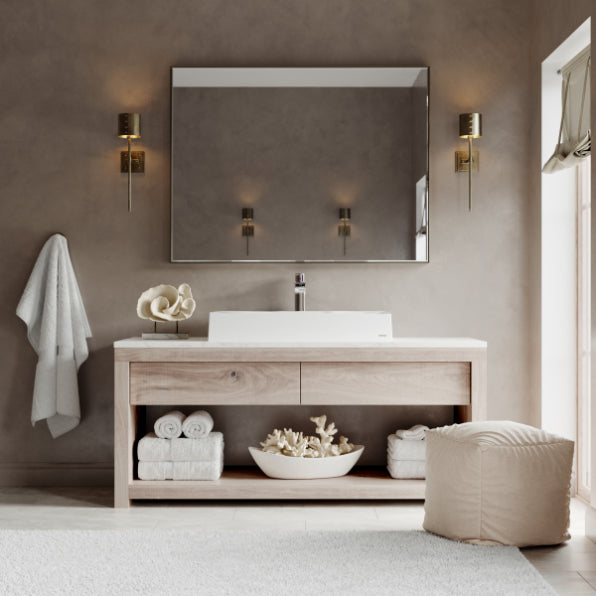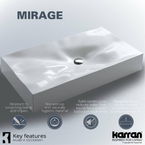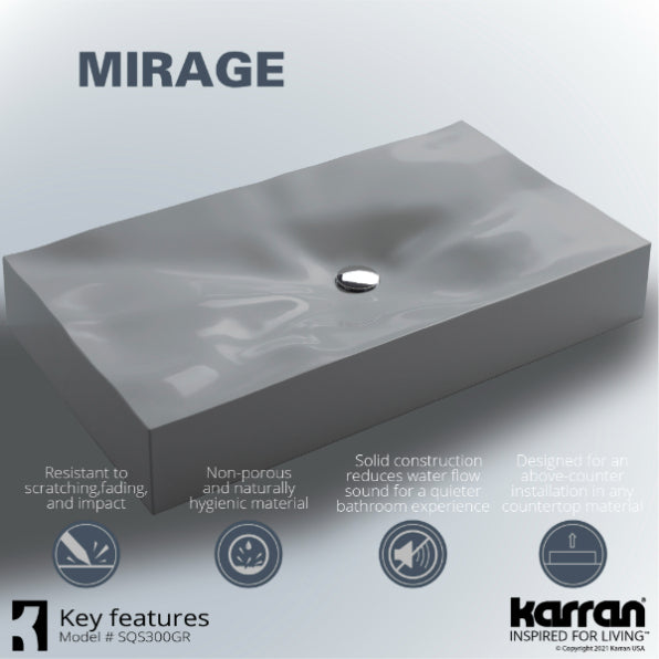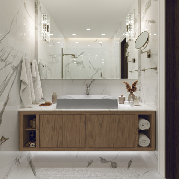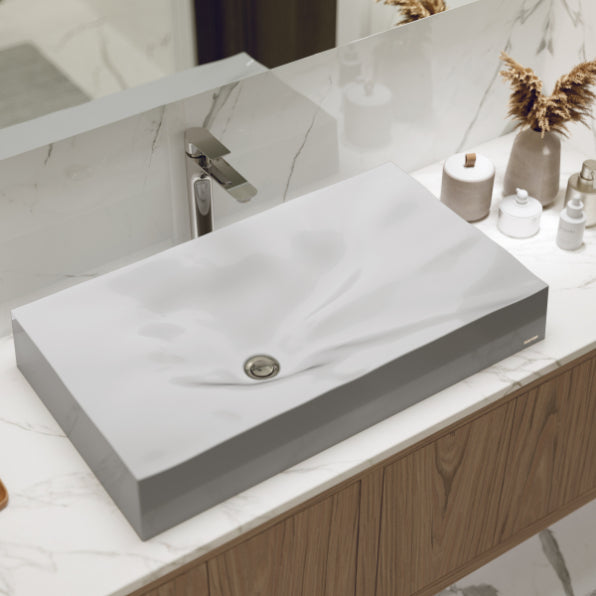 The Mirage Quartz Composite Vessel Sink is a breathtaking centerpiece for any bathroom, designed to mimic the beauty of the Earth’s natural formations shaped by water and wind. Crafted from ultra-durable quartz composite, this sink combines visual appeal with lasting functionality. The lustrous silky matte finish adds an elegant touch, while its non-porous surface ensures easy cleaning and maintenance, making it an ideal choice for modern bathrooms.