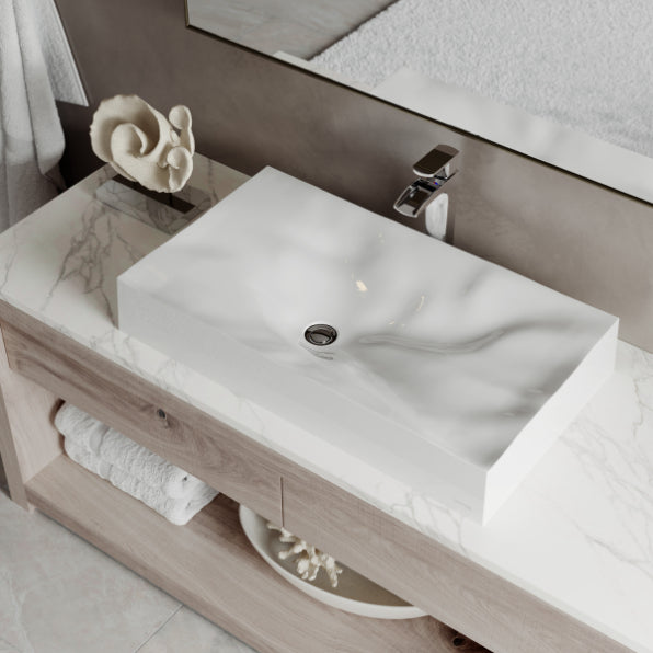- Above-Counter Installation: Designed for above-counter installation, this sink maximizes storage space below while adding a modern, elevated aesthetic to your bathroom.