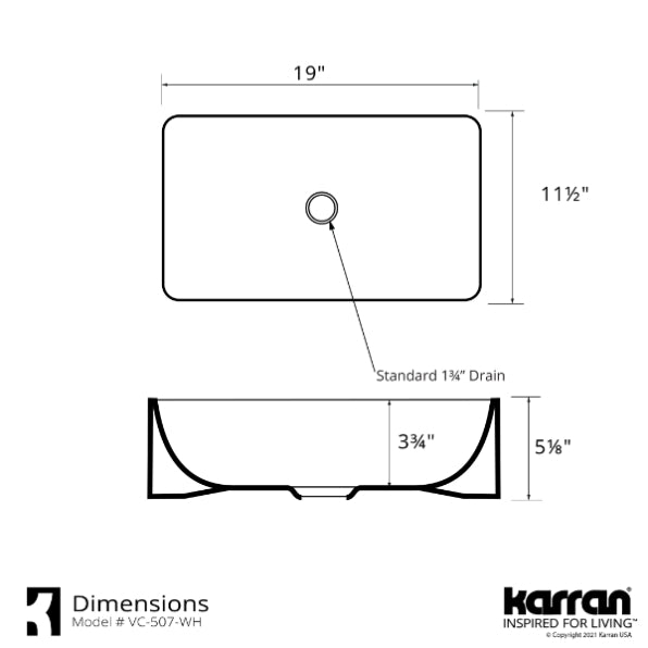 - Minimum Cabinet Size: 21" vanity base cabinet