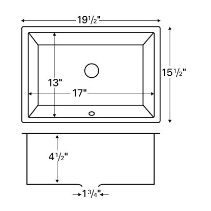 - Inside Bowl Dimensions: 17” x 13-1/4” x 4-3/4”