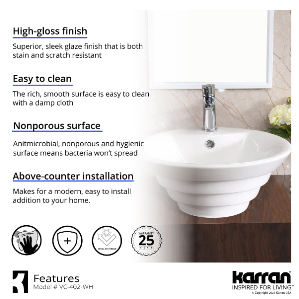 - High-Gloss, Double-Glazed Finish: The durable, non-porous surface resists staining, scratching, and heat, ensuring a long-lasting, visually appealing sink that is easy to clean and maintain.