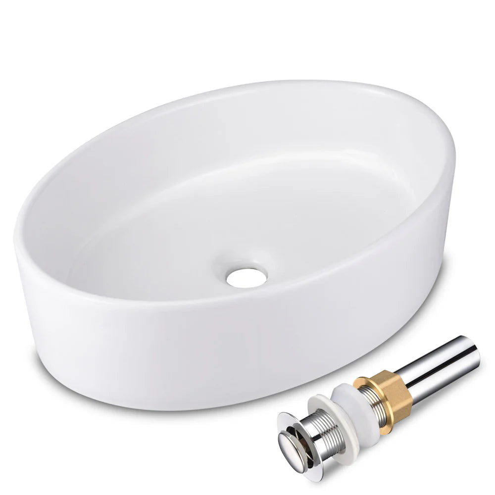 The Nyx Porcelain Vessel Bathroom Sink offers a sleek and modern design that adds a contemporary touch to any bathroom. With its oval shape and minimalist appeal, this vessel sink serves as a striking focal point for a variety of bathroom styles. Crafted from high-quality ceramic with a glossy finish, this sink combines elegance and practicality, making it perfect for residential or commercial spaces such as homes, villas, hotels, and restaurants.