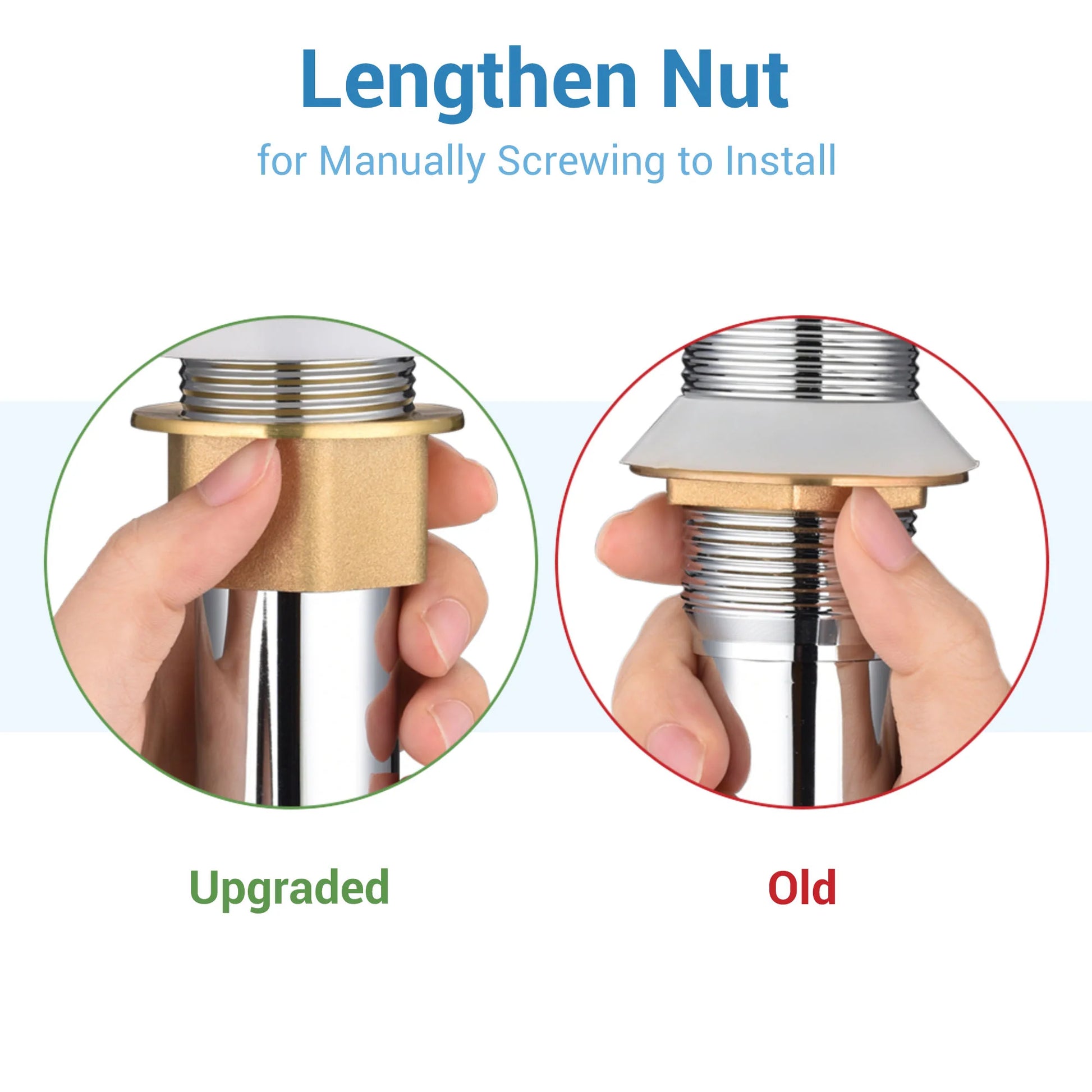 - Pop-Up Drain with Square Nut: The sink comes with a free pop-up drain featuring a unique square nut for easy manual installation. Made of durable chromium alloy, it ensures long-term performance and resistance to corrosion.