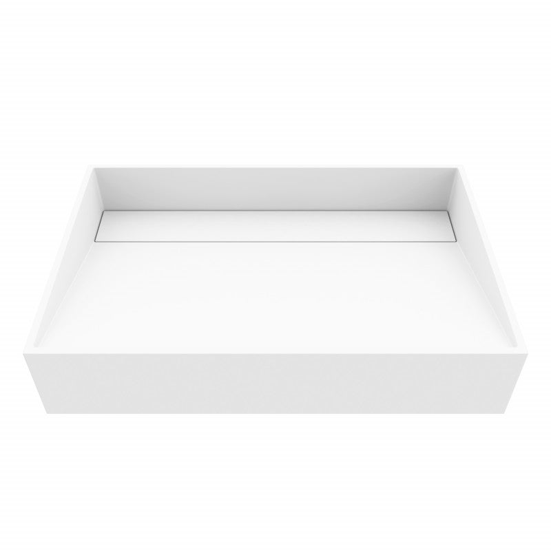 VIGO Starr Grand Matte White Rectangular Vessel Sink – Sculpted Matte Stone™ Design with Hidden Drain Detail