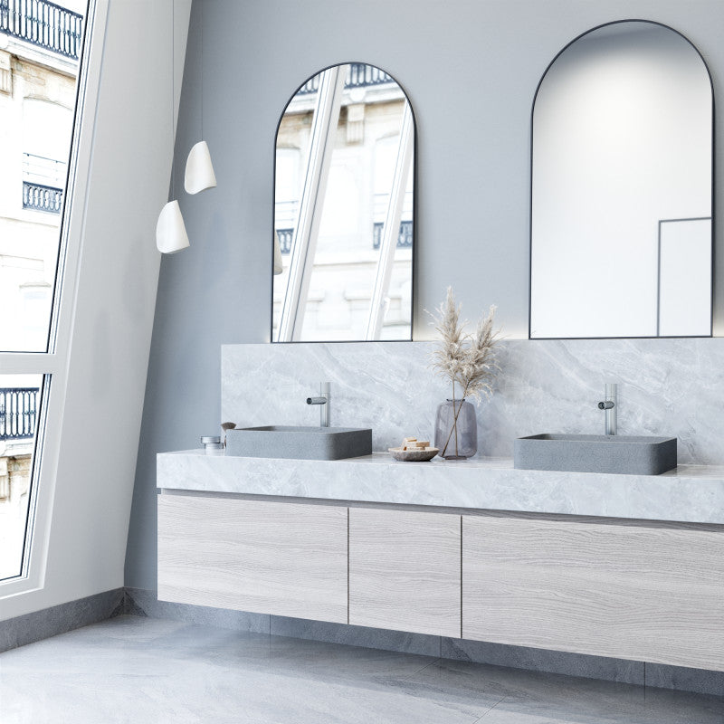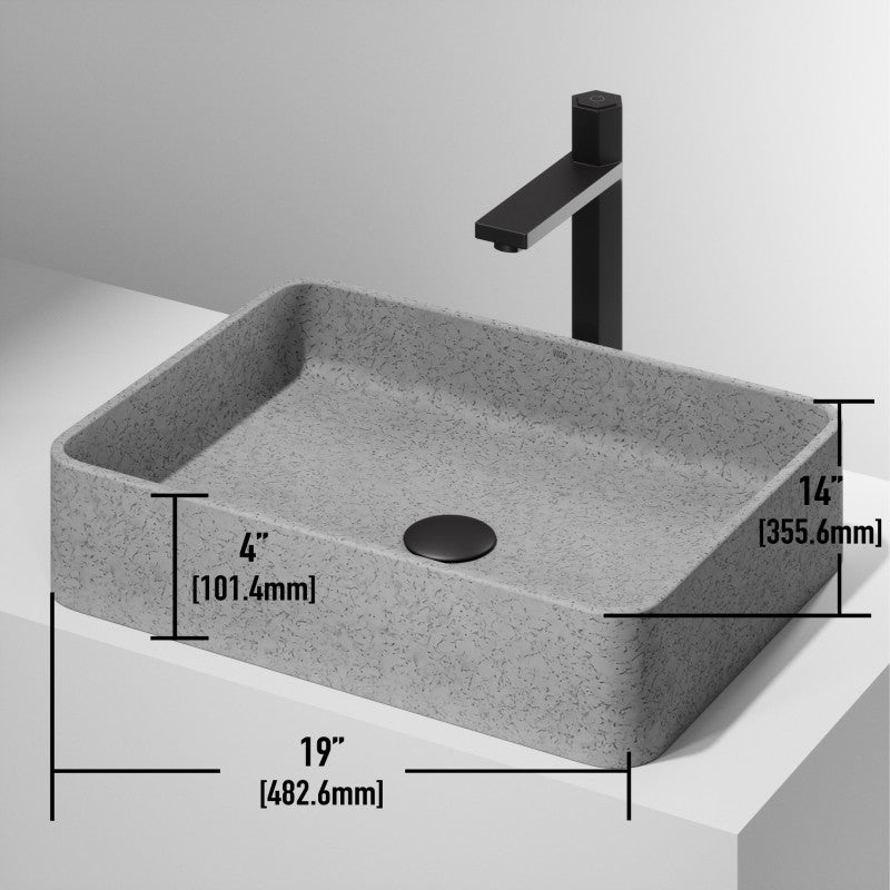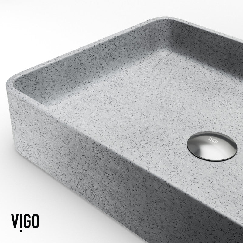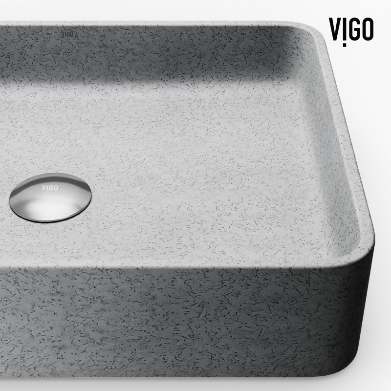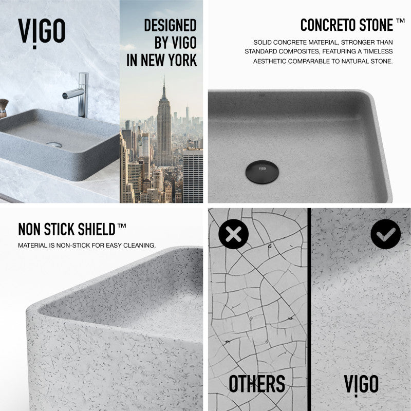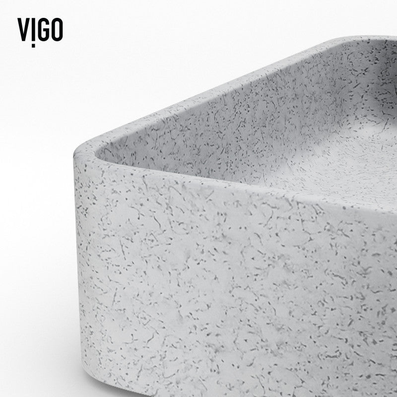 Understated elegance meets concrete strength in the VIGO Terragona Vessel Sink, crafted for modern performance and timeless appeal. Made from VIGO’s proprietary Concreto Stone™ blend, this rectangular sink combines durable concrete with sustainable materials to form a non-porous, hygienic surface that’s resistant to scratches, heat, and stains. The soft grey tone and gently curved corners create a calming presence that integrates effortlessly into traditional, transitional, and contemporary spaces.