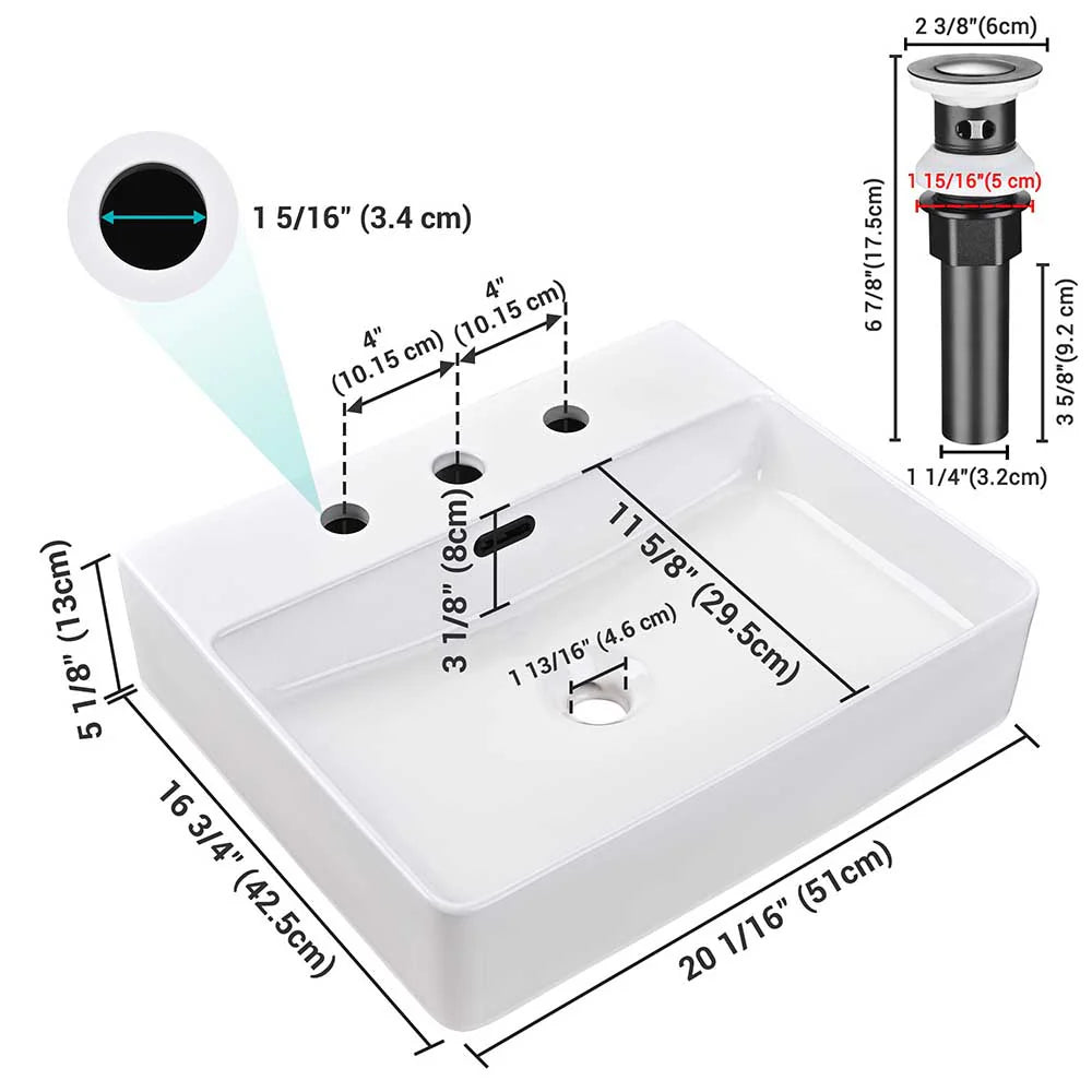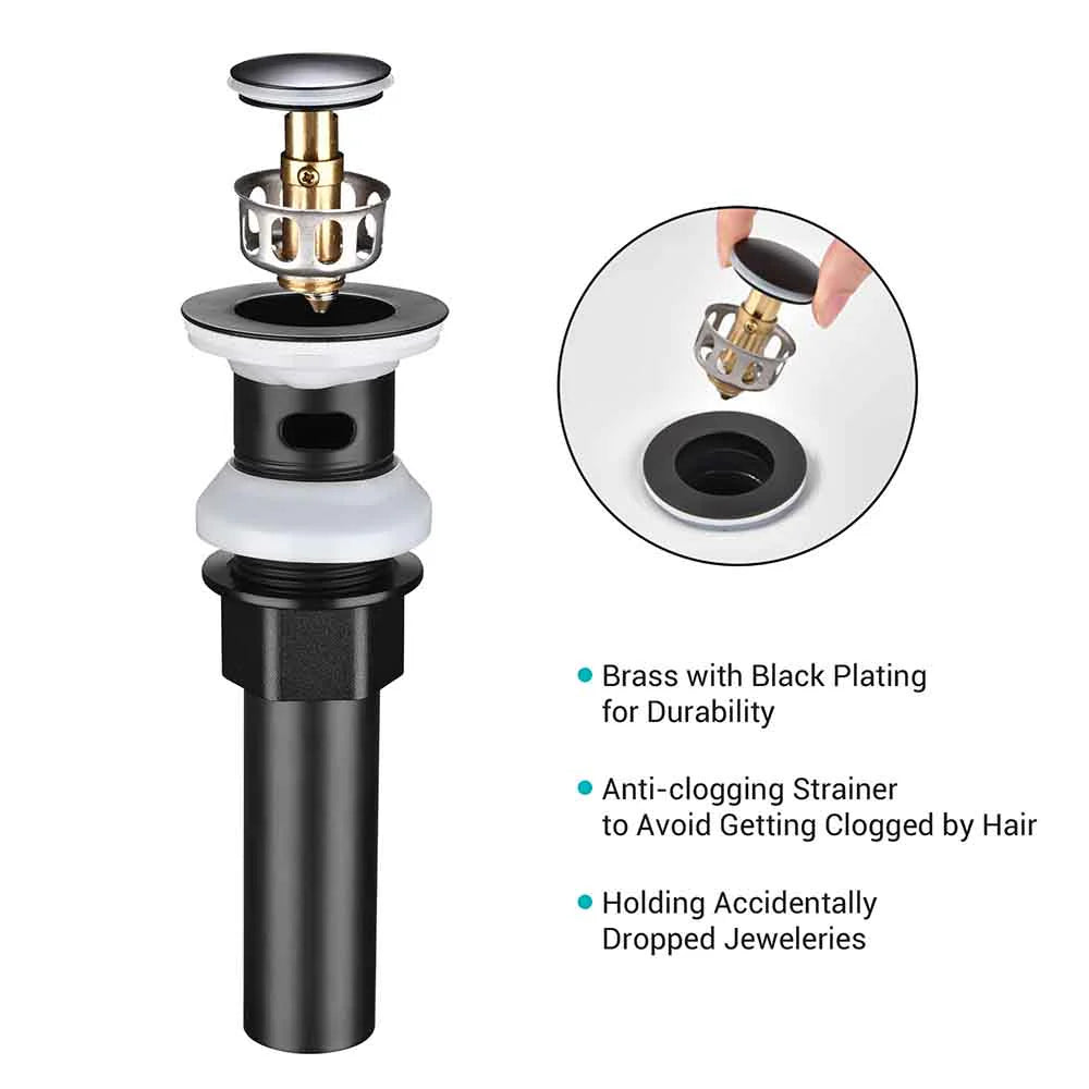 - Pop-Up Drain with Overflow: The sink includes a one-piece pop-up drain with an overflow hole, preventing water from spilling while ensuring easy drainage and avoiding clogging.