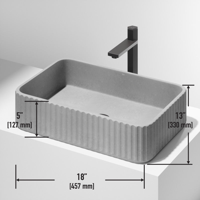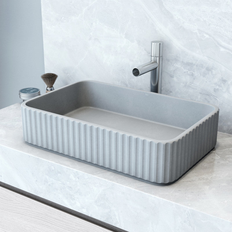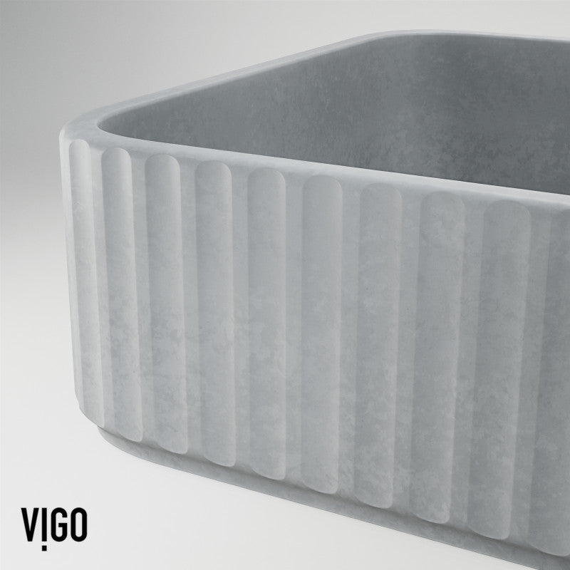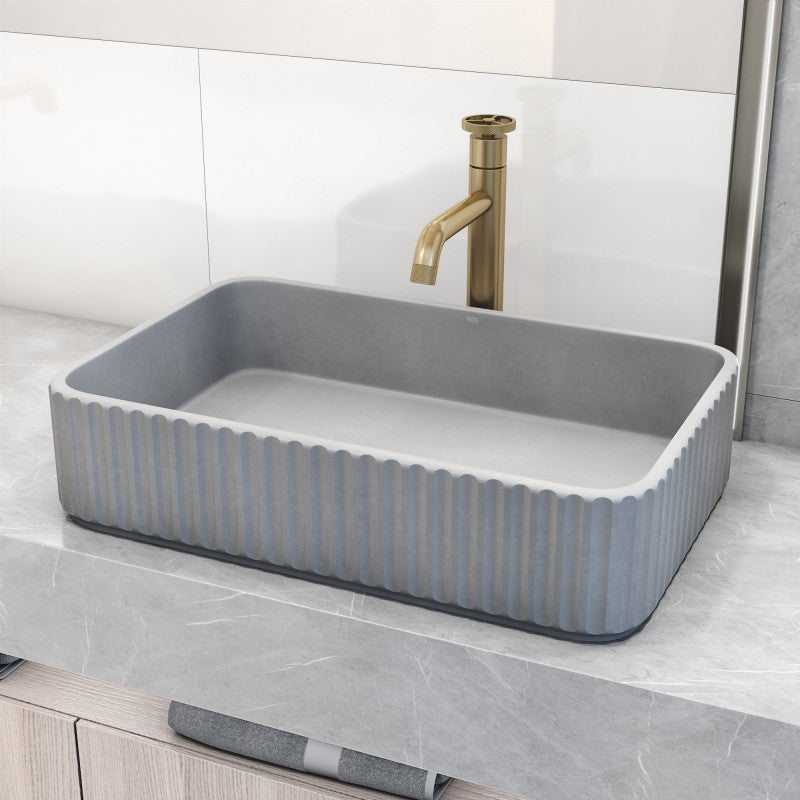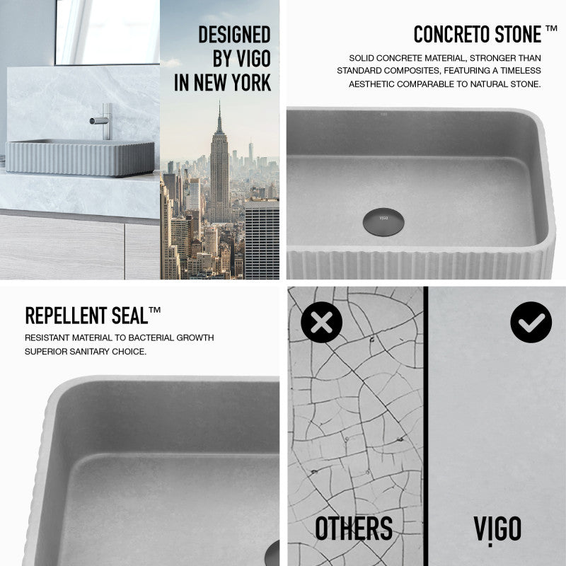 VIGO Windsor Concreto Stone™ Fluted Rectangular Vessel Sink – Matte Grey Concrete Composite with Rounded Corners