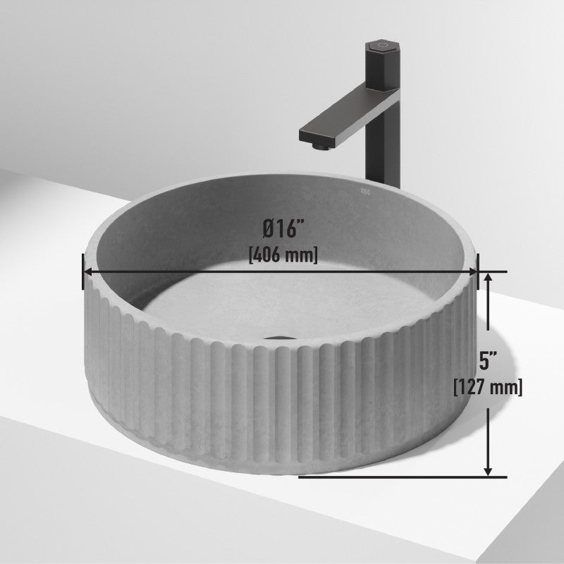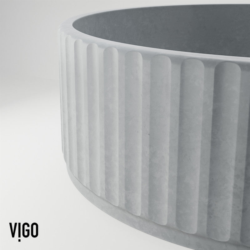 VIGO Windsor Concreto Stone™ Round Fluted Vessel Sink – Matte Grey Concrete Composite with Artisan Texture