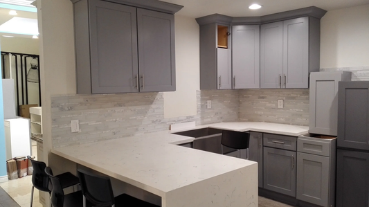 Love this vanity - it was easy to install and looks great. Slight gap in between the two cabinets, but we don't mind too much. The seamless sinks & countertop are beautiful. Drawer space isn't amazing, but the soft close features and deep cabinets make up for it