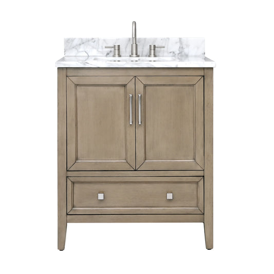 Harper 30" Freestanding Bathroom Vanity with Carrara White Natural Marble Top and Vitreous China Undermount Sink