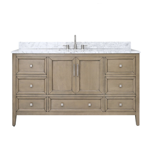 Everette 60" Freestanding Bathroom Vanity with Carrara White Natural Marble Top and Vitreous China Undermount Sink