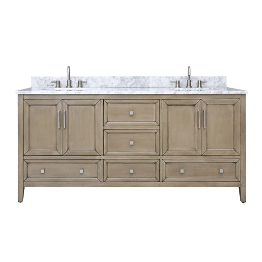 Everette 72" Freestanding Bathroom Vanity with Carrara White Natural Marble Top and Vitreous China Undermount Sinks