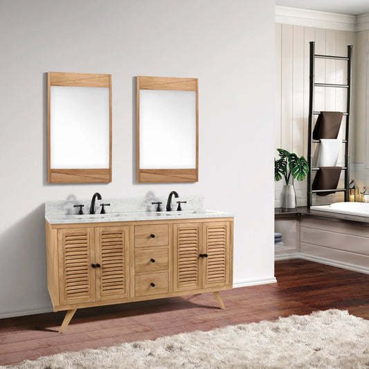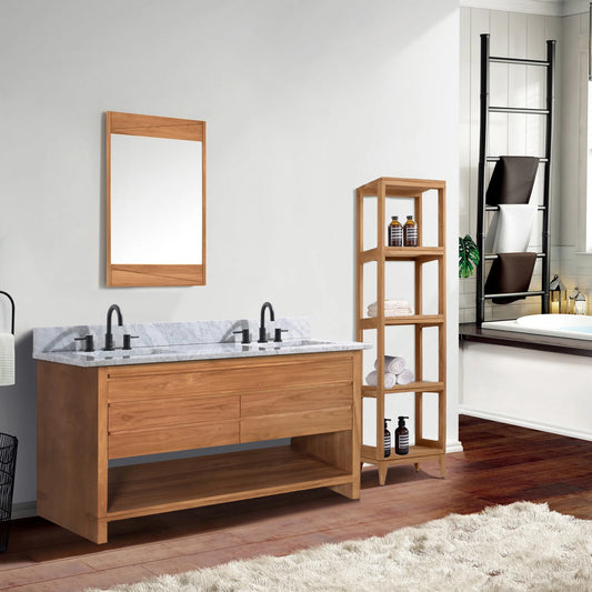 Mason 60" Freestanding Bathroom Vanity with Carrara White Natural Marble Top and Vitreous China Undermount Sinks