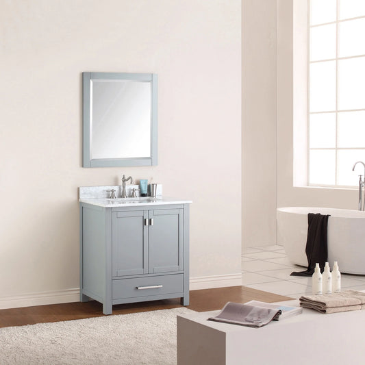 Mason 30" Freestanding Bathroom Vanity with Carrara White Natural Marble Top and Vitreous China Undermount Sink