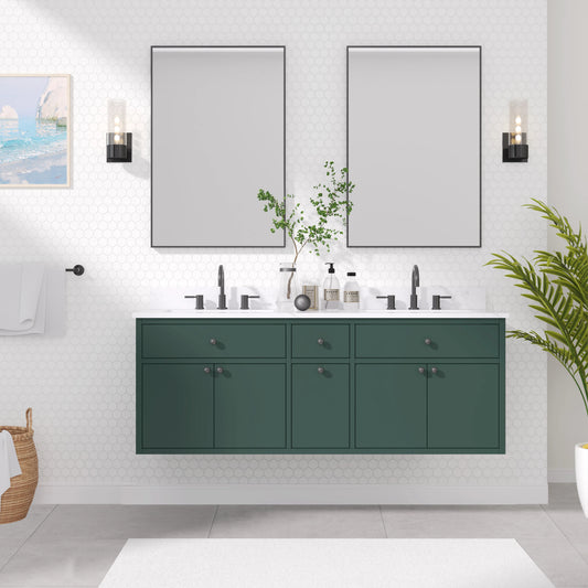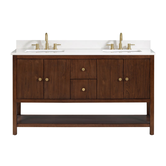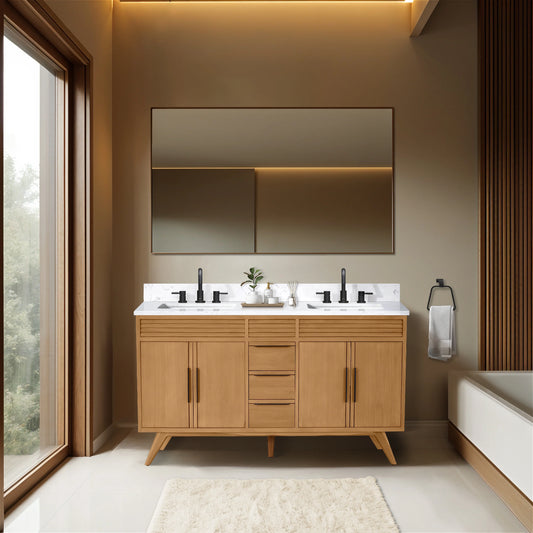 Zoe 60" Freestanding Bathroom Vanity with Pure White Quartz Top and Vitreous China Undermount Sinks