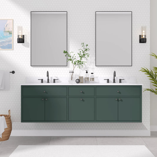 Taylor 72" Freestanding Bathroom Vanity with Stone Top and Vitreous China Undermount Sinks