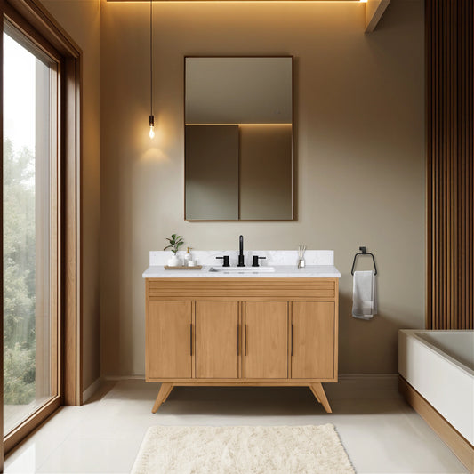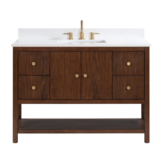 Zoe 48" Freestanding Bathroom Vanity with Pure White Quartz Top and Vitreous China Undermount Sink