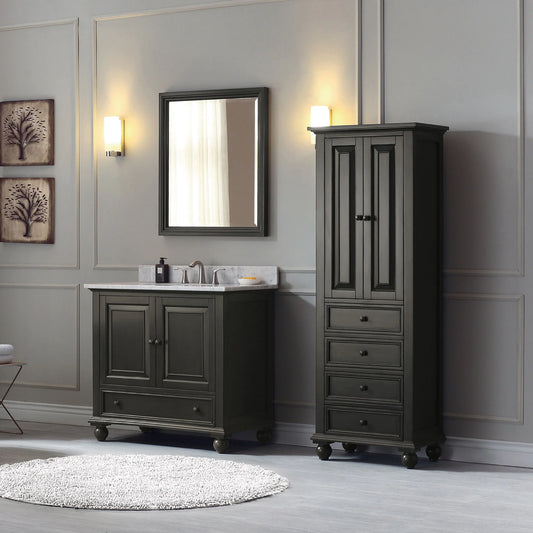 Thompson 36" Freestanding Bathroom Vanity with Carrara White Natural Marble Top and Vitreous China Undermount Sink