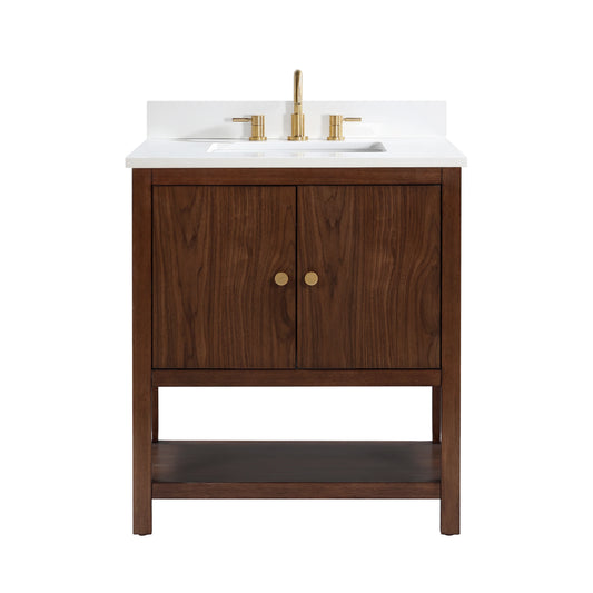 Zoe 30" Freestanding Bathroom Vanity with Pure White Quartz Top and Vitreous China Undermount Sink