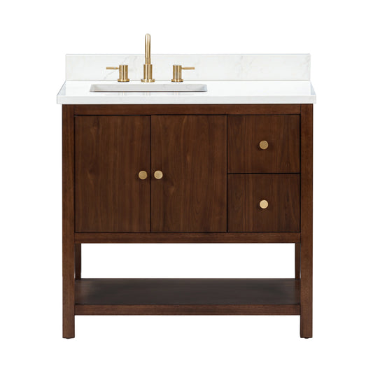 RTA Maple Walnut Raised Panel 36" Freestanding Bathroom Vanity Combo Base with Optional Quartz or Ceramic Countertop