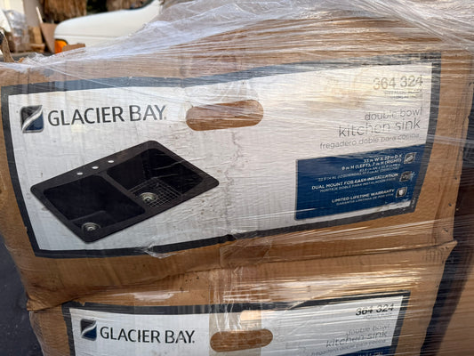 [CLEARANCE] Glacier Bay Dual Mount Granite 33 in. 1-Hole Double Bowl Kitchen Sink in Metallic Black