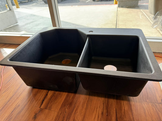 [CLEARANCE] Glacier Bay Dual Mount Granite 33 in. 3-Hole Double Bowl Kitchen Sink with Drains and Bottom Grid in Black