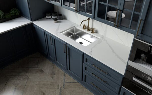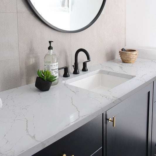 Love this vanity - it was easy to install and looks great. Slight gap in between the two cabinets, but we don't mind too much. The seamless sinks & countertop are beautiful. Drawer space isn't amazing, but the soft close features and deep cabinets make up for it