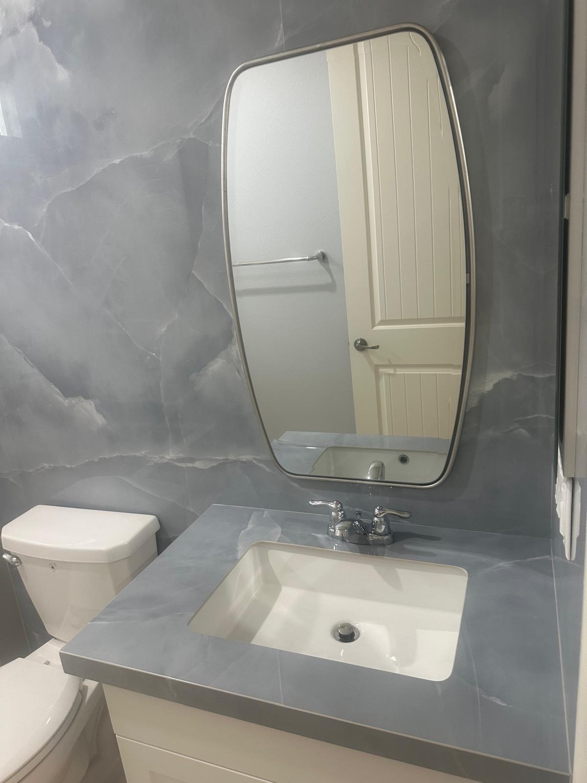 - Onyx Sky Stone Inspired Aesthetic: Gentle blue tones layered with translucent white veining create a calm, expressive surface with visual depth.