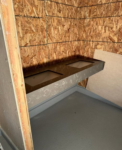 Love this vanity - it was easy to install and looks great. Slight gap in between the two cabinets, but we don't mind too much. The seamless sinks & countertop are beautiful. Drawer space isn't amazing, but the soft close features and deep cabinets make up for it
