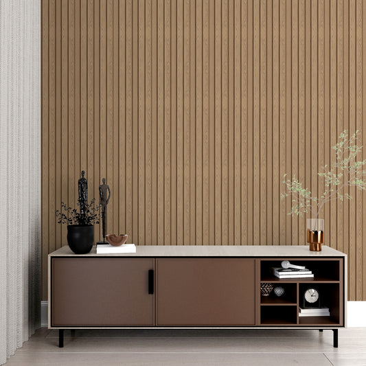 Golden Oak Large Slatted Polypropylene Interior Decorative Wall Panel