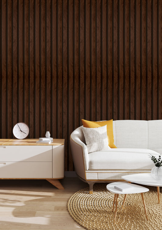 Dark Oak Medium Slatted Polypropylene Interior Decorative Wall Panel