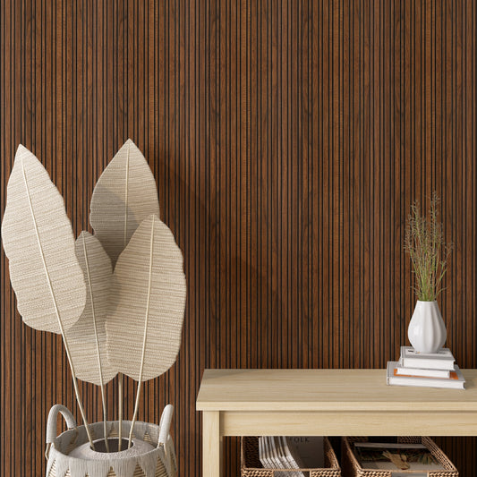 Dark Oak Two-Tone Small Slatted Polypropylene Interior Decorative Wall Panel