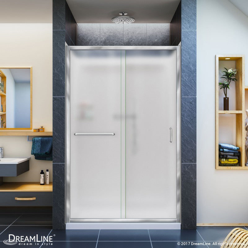 Infinity-Z Semi-Frameless Sliding Shower Door Kit with Clear Glass, Chrome Hardware, and Diamond Tile Wall Panels