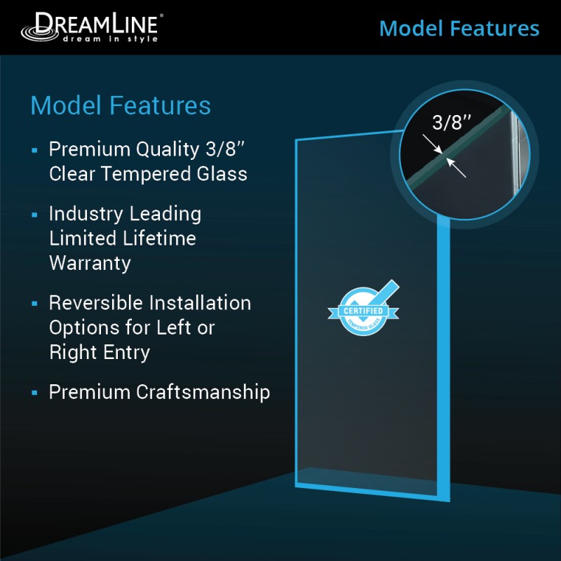 - ClearMax Coating: DreamLine’s proprietary water- and stain-resistant coating keeps glass looking pristine with minimal effort.